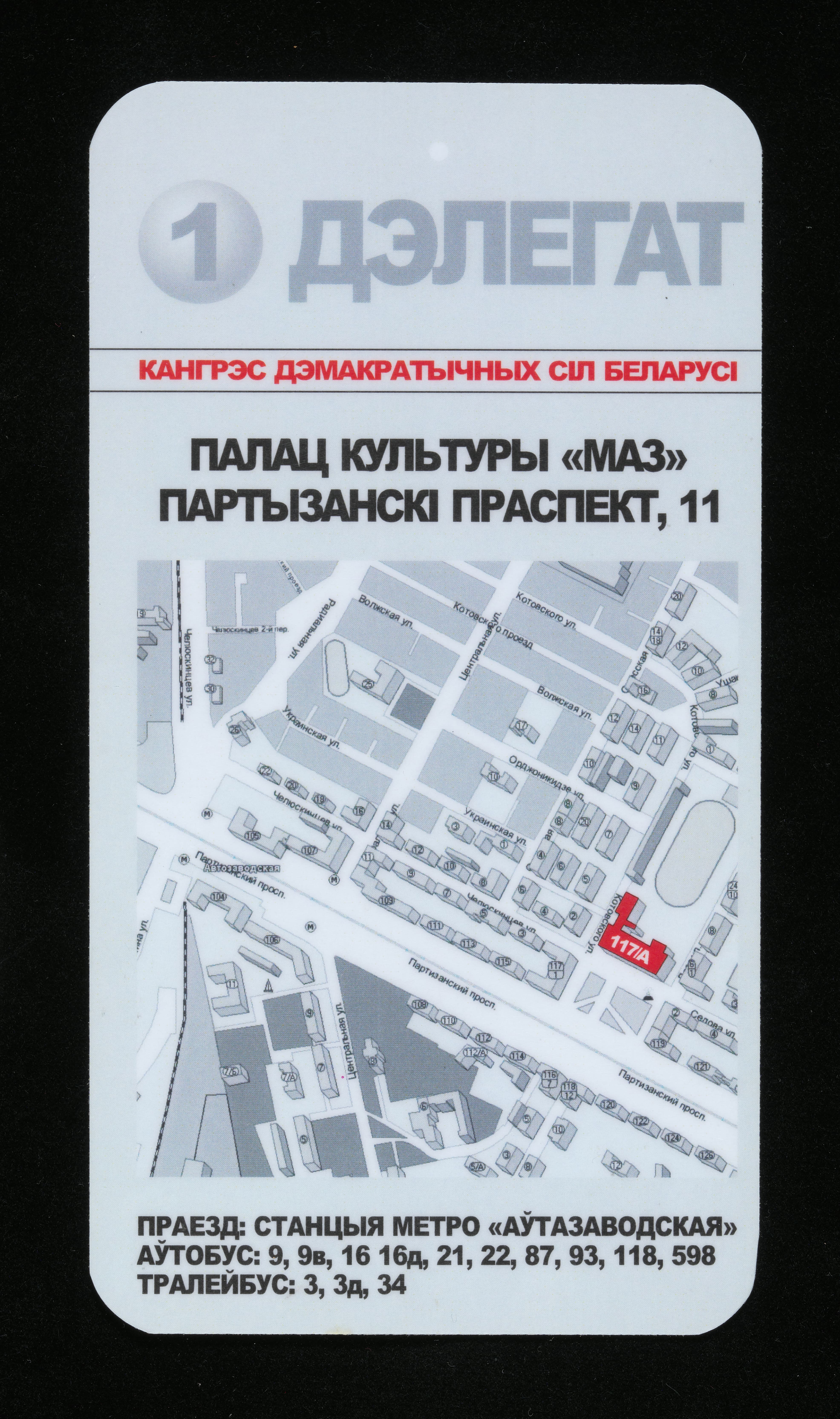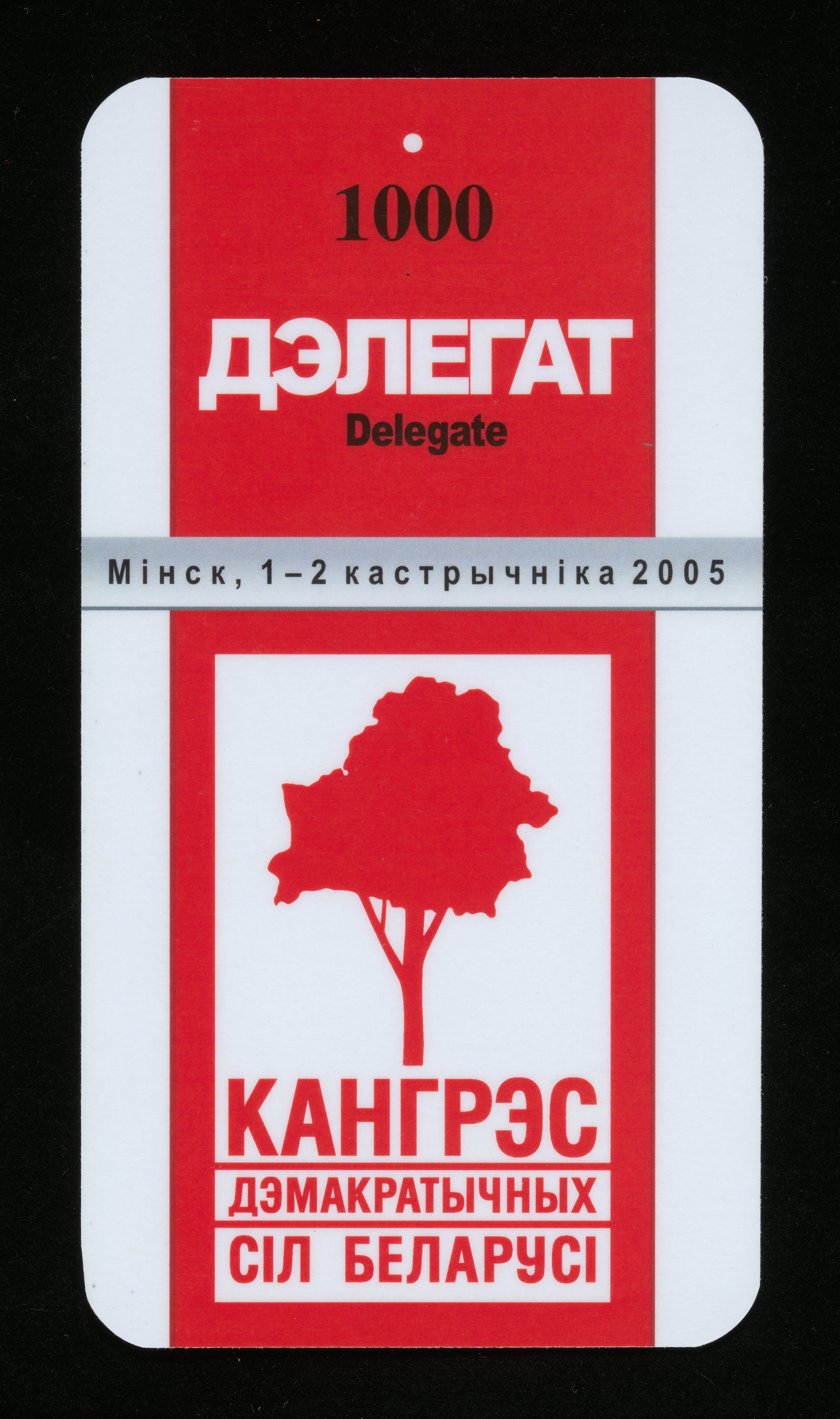 Білет дэлегата Кангрэсу Дэмакратычных Сілаў Беларусі, 1-2 кастрычніка 2005 г., Мінск