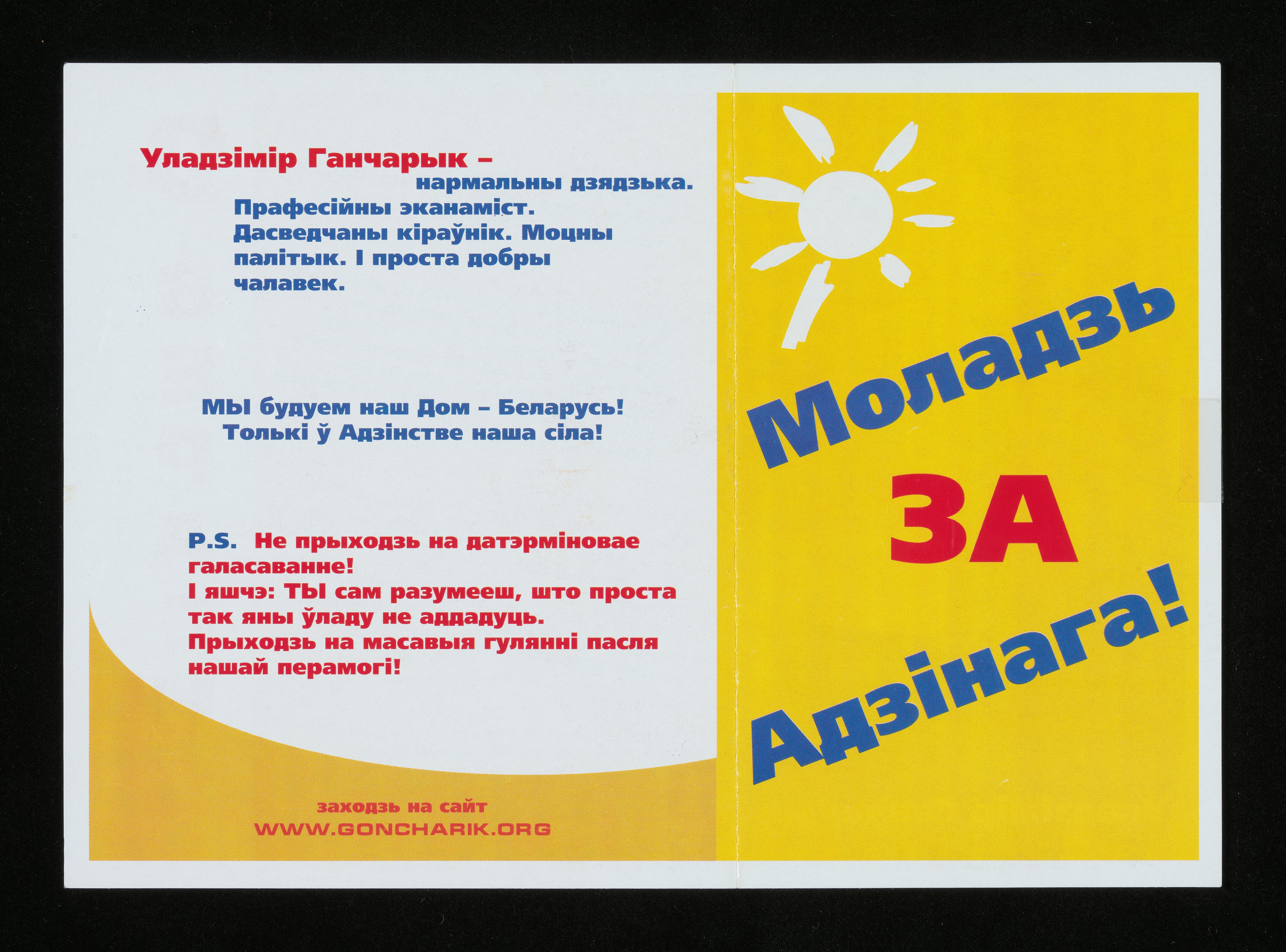 Перадвыбарчая ўлётка Уладзіміра Ганчарыка «Моладзь за Адзінага»