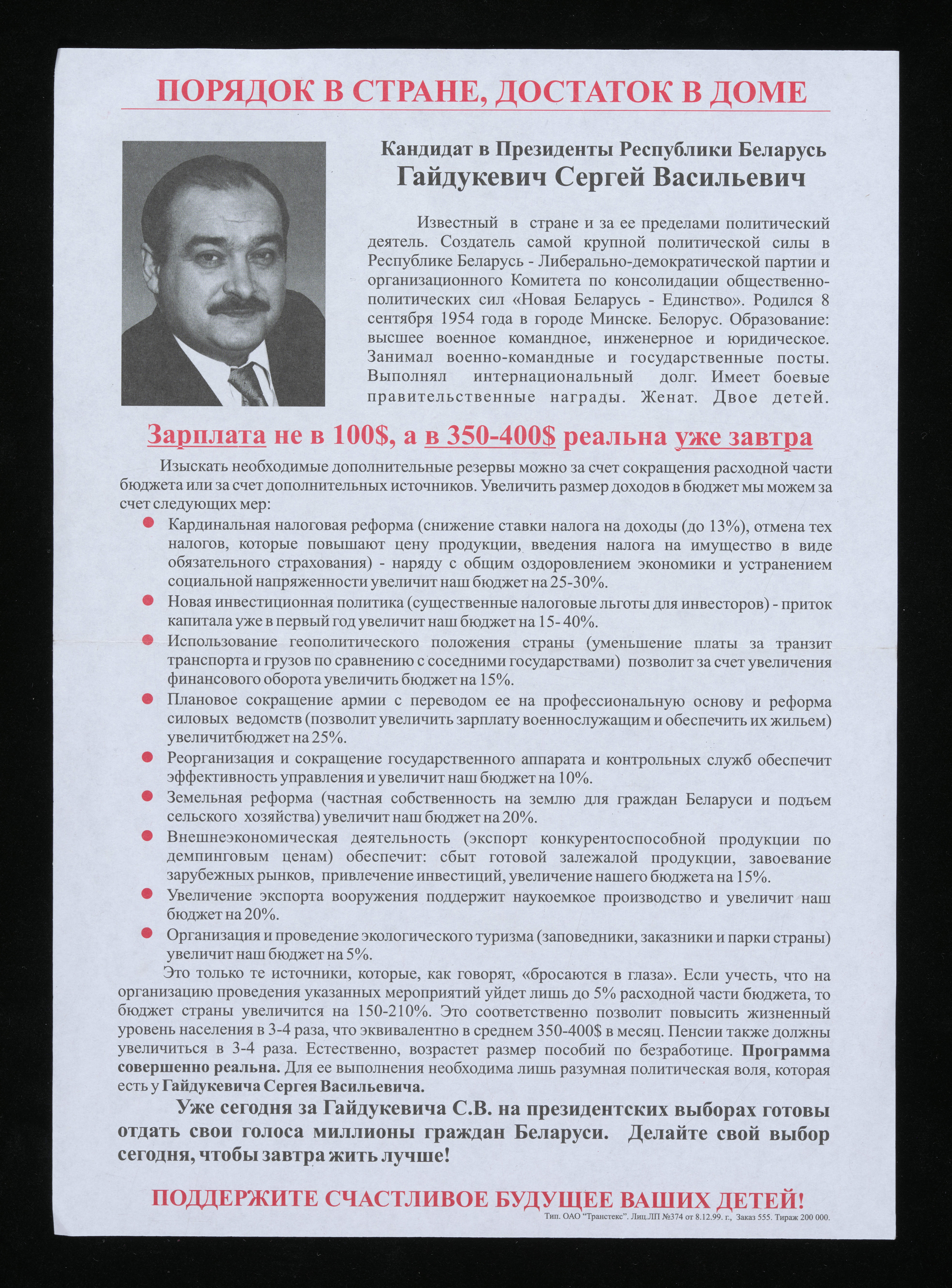 Перадвыбарчы плакат Алега Гайдукевіча 2001 года