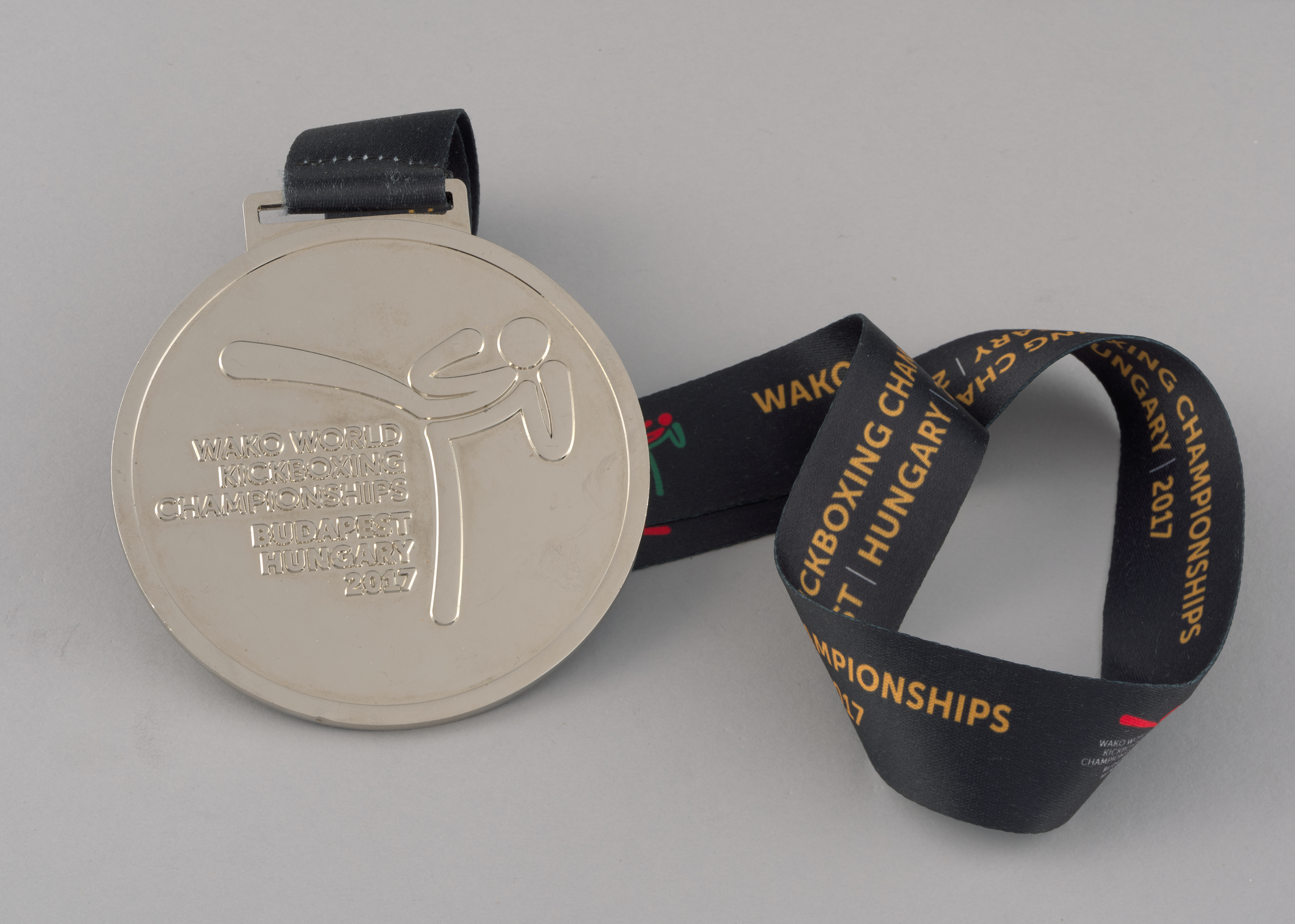 Срэбны медаль з Чэмпіянату Свету па кікбоксінгу 2017 г. Івана Ганіна, прададзены на дабрачынным аўкцыёне і перададзены ў музей невядомай асобай